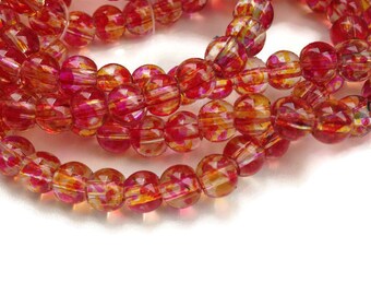 50 Mottled Beads, Pink Red Yellow Round Glass Beads, 6mm Round Glass Beads G 50 029
