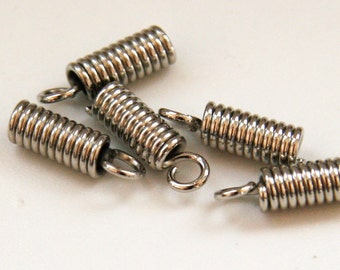 Silver Cord Ends Spring Coil Ends Brass Finish Coil Ends Spring Coil Cord Tip Bead Cap Fastener Clasps 20pcs F 20 060