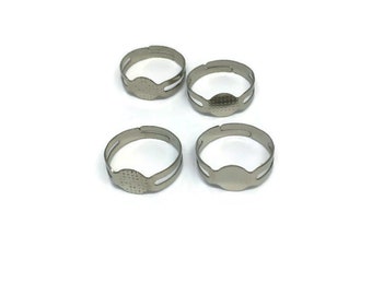 10 Silver Ring Bases, Adjustable Ring Bases, Glue Pad F 20 058