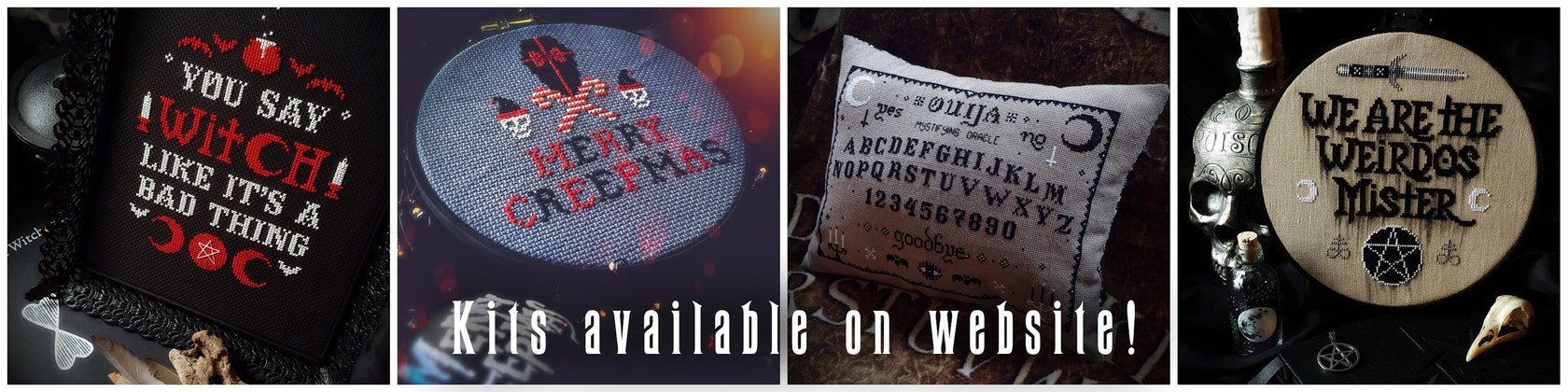On a dreary night amongst towering mountains, in a dark cabin bounded by a dense forest...I entered this world. As a young sprout I always had an affinity for the macabre...and the punny. I happily linger in the underbelly of traditional art whether it be cross stitch, fine arts or graphic design and hold a BFA, among a few other certificates and diplomas. I cannot do the same job for 5 or 6 years... I start to get all murdery. I've run a few businesses but The Witchy Stitcher is a tomb I can see myself resting in for a long time ⚰️