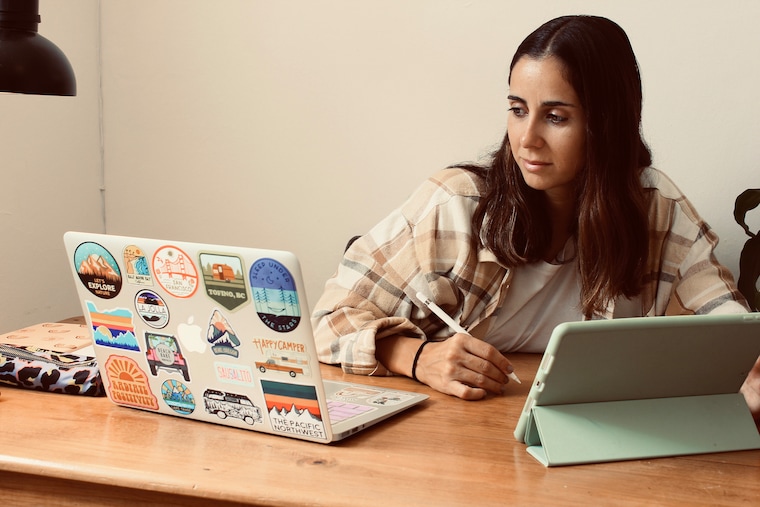 The design process may seem effortless, but for me, it's a ritual. My production process begins with the creative phase, where I start designing and bringing together all the ideas in my head. For this initial step, I always use my laptop and my design software, including Adobe Photoshop and Adobe Illustrator. I also sometimes create my own illustrations using the Vectornator app on my iPad with the iPencil.