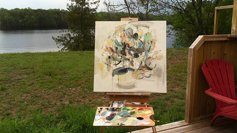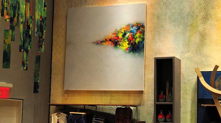 Large landscape painting in 6' x 6' hanging in Anthropologie New York store. -