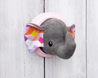 Elephant Faux Taxidermy Home Decor - 8" plaque - SIZE 3