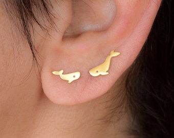Tiny Whale Earrings Mother and Child Studs sterling silver New mom baby kid gold studs Minimal Jewelry Kids Teen gift for her animal mammal