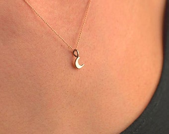Solid Gold Extra Tiny Moon Necklace Crescent Moon Necklace 14k solid gold Moon Charm Necklace Dainty rose gold white gold pendant