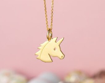 Solid Gold Unicorn Necklace Fairy Animal 14k solid Gold Pendant necklace Rose Gold Gift Mythical Horse Teen Kid Mom women Christmas white