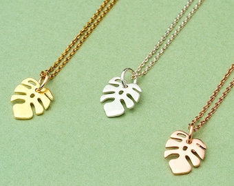 Solid gold Monstera Necklace Tropical Tiny Leaf Rose Gold White Dainty Jewelry Palm leaf Summer necklace Birthday gift