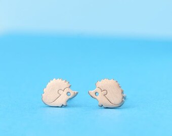 Solid Gold Hedgehog Earrings woodland studs 14k yellow gold stud earring gift animal rose gold earring 14k dainty solid gold
