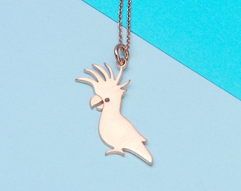 Cockatoo Necklace Parrot Pendant Summer Necklace Tropical Bird Pendant Sterling Silver Kids Teen Jewelry Rose Gold charm Birthday gift
