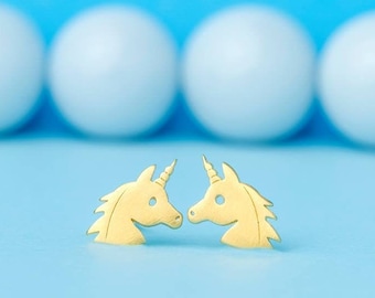 Solid gold Unicorn Earrings 14k yellow Gold white Stud Moon Stud 18k Rose 9k Everyday Earrings Gift for her Halloween Magical Horse