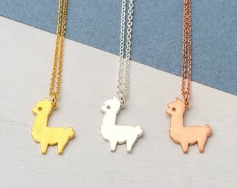Solid Gold Alpaca Necklace 14k Yellow 18k Rose dainty Gold Pendant pet necklace wedding gift teen kid mom for her Valentine Knitting Wool