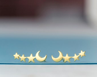 Moon Star Ear Climber Tiny Star Moon Earrings Sterling Silver Rose Gold Everyday Teen Mothersday Celestial Birthday gift