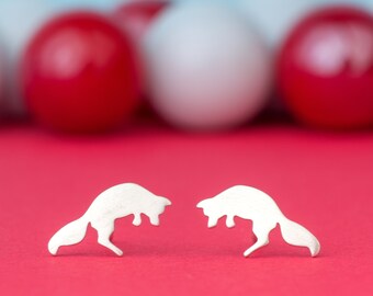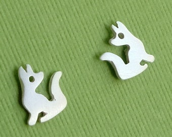 Tiny Fox Earrings Pouncing vixen studs sterling silver jumping animal gift women kids girl teen mom woodland gift winter charm Birthday