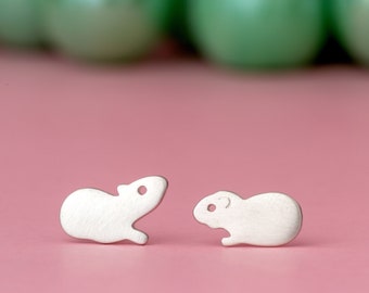 Tiny Guinea Pig Earrings Animal Studs sterling silver Critter gold studs Minimal Jewelry Kids Teen gift for her mom valentine