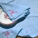 2 Curtains Red Hand Embroidered French Country Kitchen Panels Off White Cotton Home Decor Folk Alsace Villagers #sophieladydeparis -
