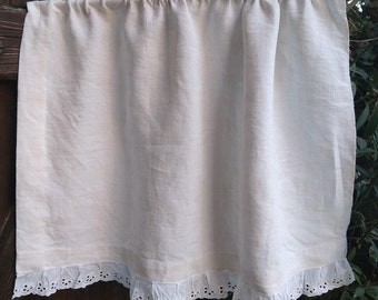 Linen Curtainn Rustic Antique White French Linen Eyelet Lace Trim French Handmade Valance #sophieladydeparis
