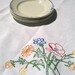Vintage White French HEMP Tablecloth Mid Century Floral Hand Embroidered Tea Tablecloth #SophieLadyDeParis -