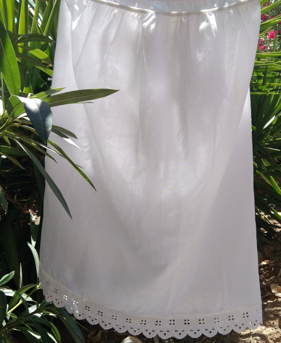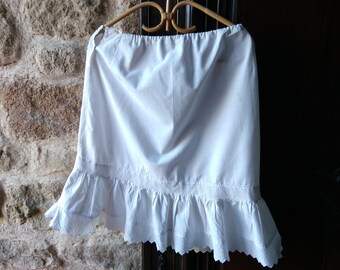 Mid-Century Petticoat Ruffled White French cotton Half Slip Handmade Hand Embroidered Clothing for Costumes Medium Large #sophieladydeparis