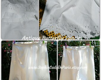 Antique White Panties Butterfly Richelieu Embroideries Scalloped Monogram Cotton Antique French Lingerie Medium / Large #sophieladydeparis