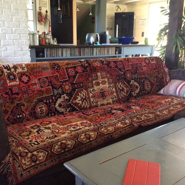 Oriental bedspread / chenille throw / Turkish velvet coverlet/ Persian rug kilim/ bohemian medallion rug/ thin area rug / single 55x87 in