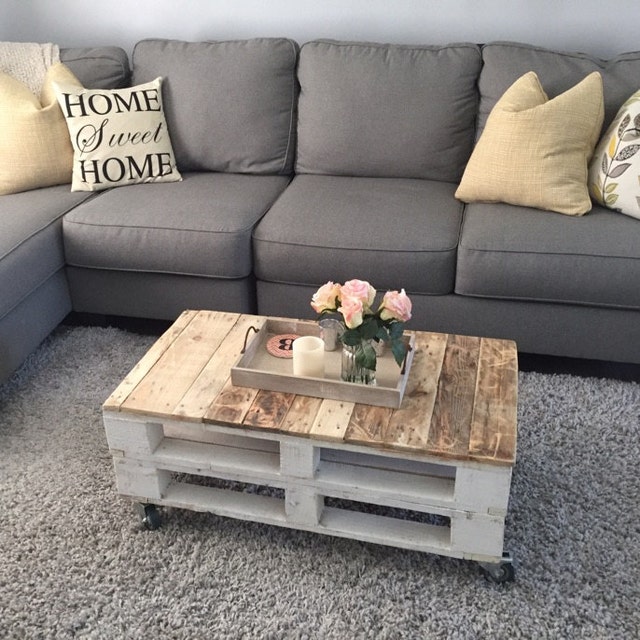 Reclaimed wood coffee table., farmhouse-style coffee table, shabby-chic furniture repurposed pallet.