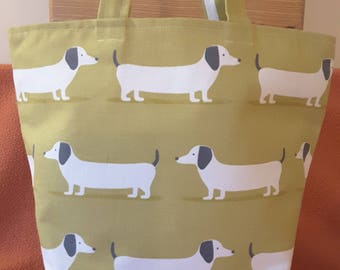 Dachshund bag/summer cotton bag/gift for her/handmade cotton bag/green bag/shopper/dogs fabric bag/dachsund gifts