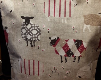 Sheep (cranberry) design handmade cotton bag by samylovesbags