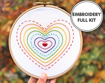 Rainbow Heart- Embroidery kit- Beginner embroidery kit- Hand Embroidery Kit- Modern Embroidery- learn embroidery kit- Heart Embroidery Kit