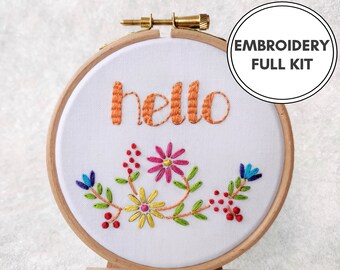 Hello Embroidery Kit- Embroidery Kit- Hand Embroidery Kit- Hello Floral- Floral embroidery- Beginner embroidery kit- DIY embroidery kit