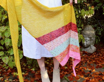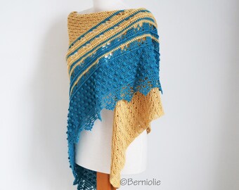 I have designed and made this triangular wrap for Lorna to keep her warm on the windswept high moor.