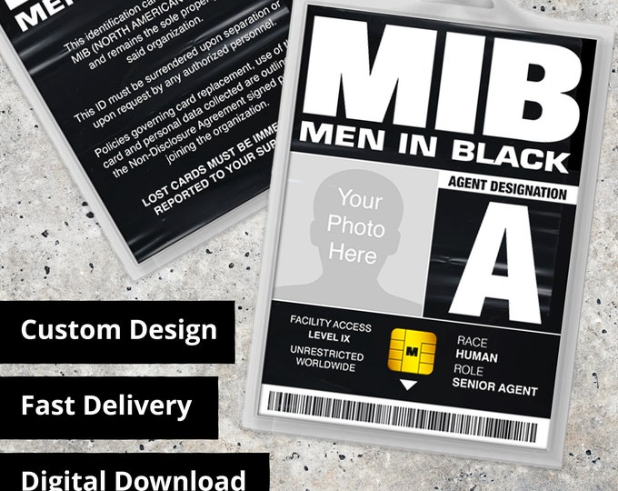 Personalized MIB Men In Black ID Card Personalized Agent - Replica Prop, Halloween Costume, Cosplay, Name Tag - Digital PDF Download