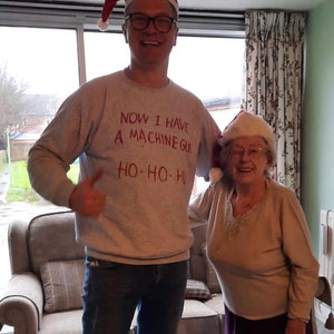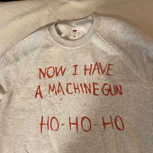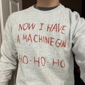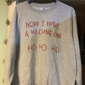 Now I Have A Machine Gun Sweater Movie Jumper Film Sweatshirt Fancy Dress Christmas Xmas Ho Heather Grey S-XXL Halloween Costume Shirt