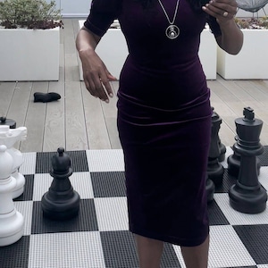 Women’s handmade jersey bodycon off shoulder Bardot dress, featuring fitted short sleeve bodice, scoop back cut out detail and a fitted pencil skirt by Stylecamp.