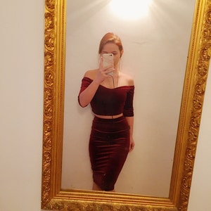 This classic 1950s off-the shoulder design is in homage to the sultry style of Brigitte Bardot. Feel resplendent in this stunning figure-hugging dress designed to emphasise your curves, while the unique deep scoop detail cuts away to reveal the lower of your back. Watch your man’s jaw drop when he sees you in this little beauty!