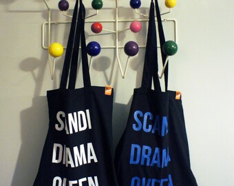 Shut up, Morrissey cotton tote bag, screen printed, pink, navy blue