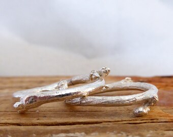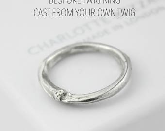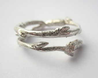 This nature inspired sliver twig ring is created by casting a cherry tree twig in sterling silver. If you are looking for a unique silver twig, twig wedding ring, or a beautiful piece of woodland inspired jewellery, then this is for you.