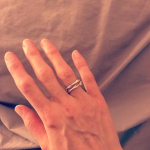 See moreSilver twig ring, twig wedding ring, cherry tree ring, nature ring, nature jewellery, woodland jewellery