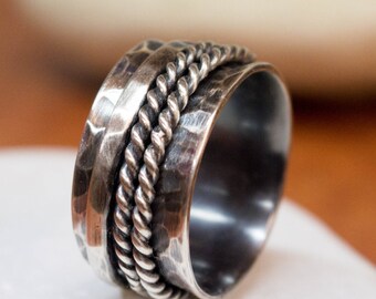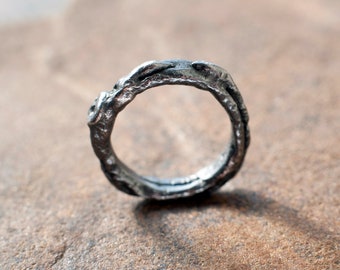 Bark textured ring. Sterling silver ring. Oxidised silver. Textured silver. Rustic ring. Rustic jewellery. Hippie ring. Nature jewellery.