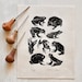 This one of a kind print is hand printed in my home studio using Caligo Safewash Oil based inks on high quality, acid free Strathmore printmaking paper. This puzzle-piece print features 7 different mini-prints in one. This print measures 9x12 for the full size print. For an alternative option, packs of 5 mystery mini-prints are available as well! (Please note that the custom color option is not available for a mystery mini-print pack)