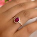 engagement ring ruby ring trillion cut red gemstone July birthstone sterling silver ring