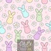 Easter Stamp Seamless Pattern PNG, Spring Bunny Chick Digital Paper, Pastel Patchwork Fabric Design, 12x12 Commercial Use