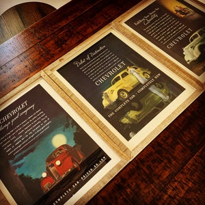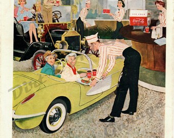 Full disclosure here: You get two classy vintage advertisements here! If you have access to a color photocopy machine that should solve any problem you might have in choosing one side over the other. Cars and Coca Cola . . . what can be more American? OK, well, there are hot dogs, cowboys, the buffalo . . . .