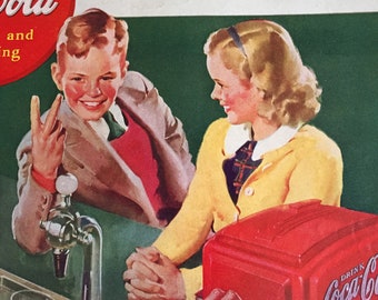 Zero Waste Gift: 1940s Coca Cola original Ad, Not a Copy, Saddle Oxfords, Fashion 1940's, Gardener Taking a Break Gift to Frame, D1