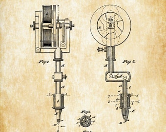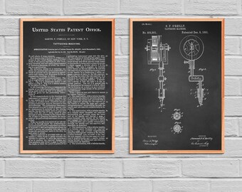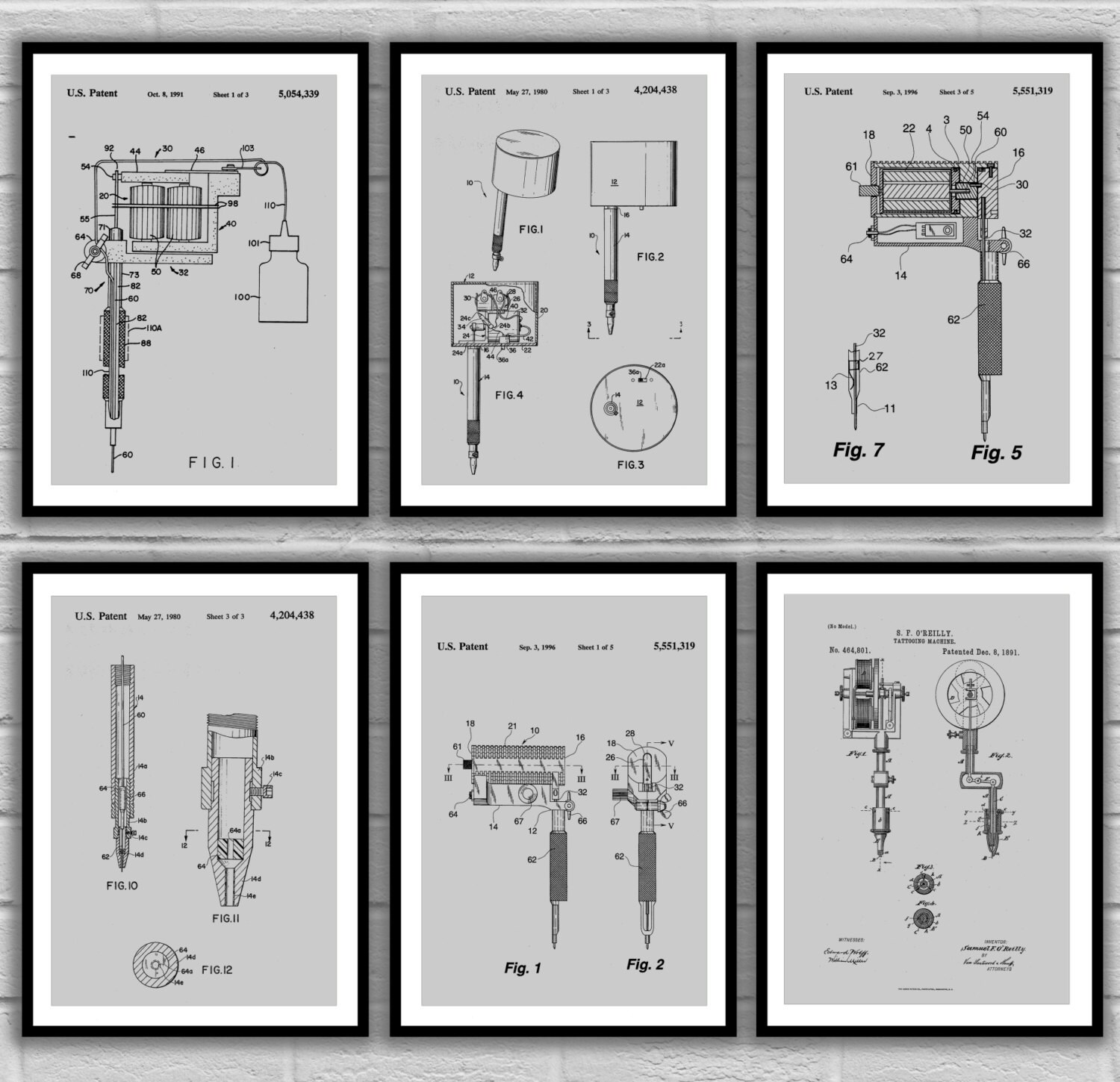 See moreTattoo Patent Prints - Set of 6 - Tattoo Patent, Tattoo Poster, Tattoo gun Blueprint, Tattoo machine Print, Tattoo Art, tattoo Decor sp35