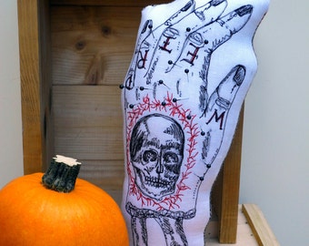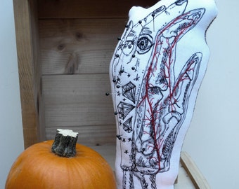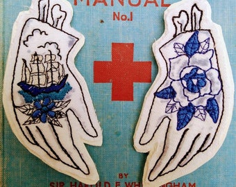 Tattooed Severed Hand complete with bone and blood, all beautifully embroidered.