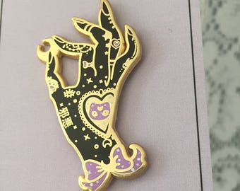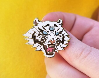 Tiger Love Tattoo Hand Enamel Pin Badge Lapel Pin Black Silver White Gold Hard Enamel