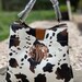 Materials: Full grain leather exterior, natural cowhide, pony hair, pony fur, cotton lined interior, brass hardware, YKK zippers, hair on hide, vegetable dye, cowhide, cow hide, leather, cow print