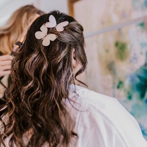 These beautiful little butterflies measure approximately 60mm across at the widest point. They are on 32mm silver alligator clips which hold securely in most hair types.