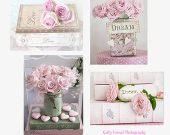 FLOWER PRINT SET - THREE FINE ART PHOTOGRAPHS, a mixture of pastel coloured roses and freesias. A lovely gift for mom. Would look lovely in a bedroom with a botanical theme or girls room with a shabby chic theme and pink or lilac wall tones.