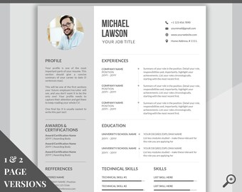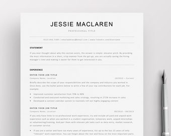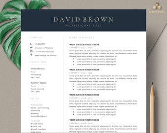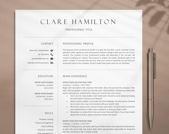 Professional Resume Template for Word | 1 and 2 Page Resume Template, Professional CV, Cover Letter | Instant Download Resume Template